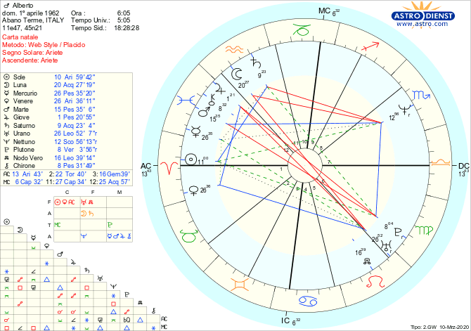 ![]() LETTURA DEL TEMA NATALE | Il Tema Natale è la lettura del cielo nel tuo giorno di nascita. La disposizione dei pianeti e le loro influenze, per l’Astrologia, riguardano il tuo carattere e le tue disposizioni naturali. Regalati una profonda esperienza di conoscenza, che solo l’Astrologia può darti. La lettura del Tema Natale si fa una volta nella vita; verrà rilasciata registrazione della consulenza e scheda tecnica con la mappa natale. L’immagine mostra esempio di ‘mappa natale’. | UN’INEDITA VERSIONE DI TE! |